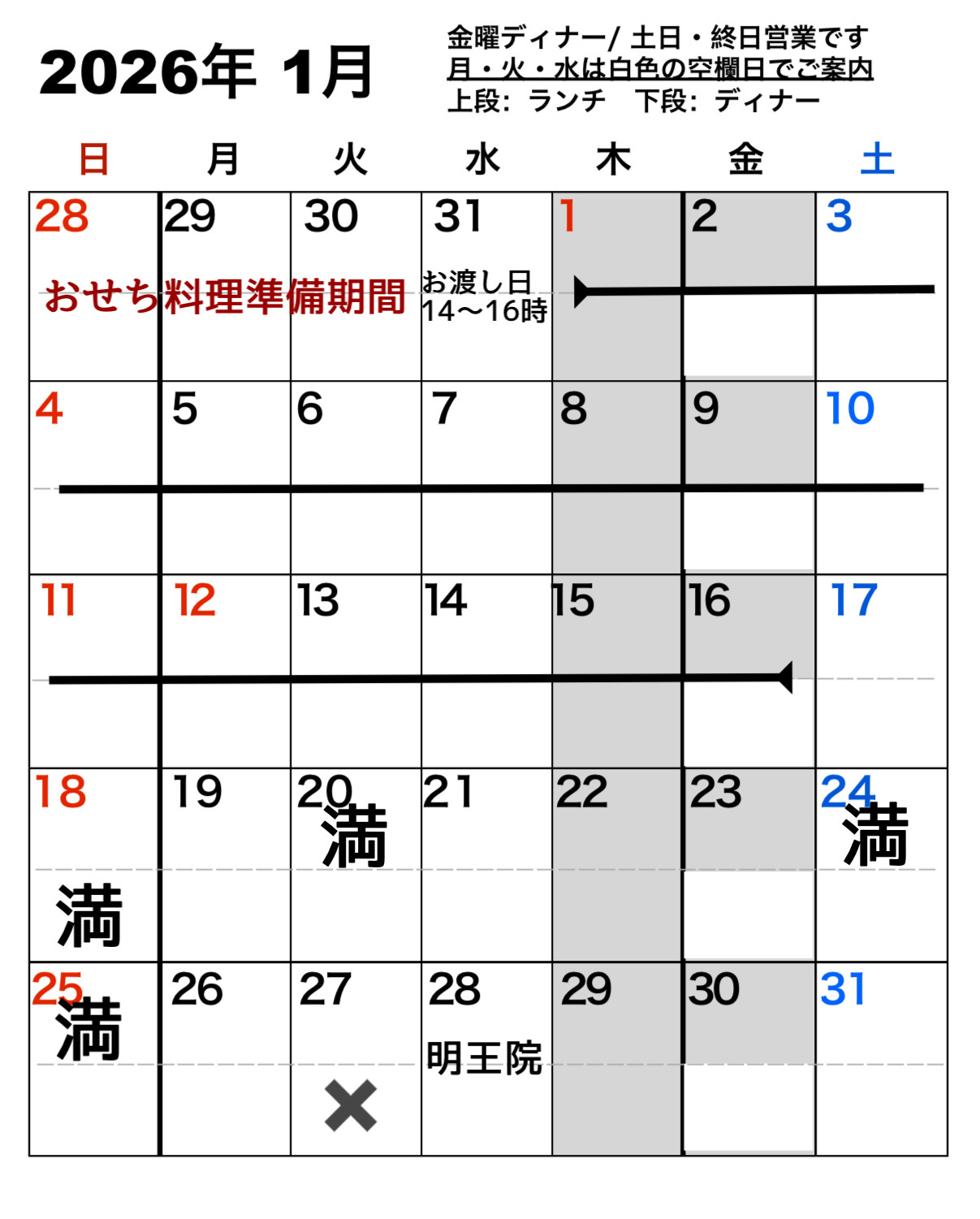 ◉12月.....今年のレストランは21日が最終営業日です。その後年末までは御節料理の準備期間となります。