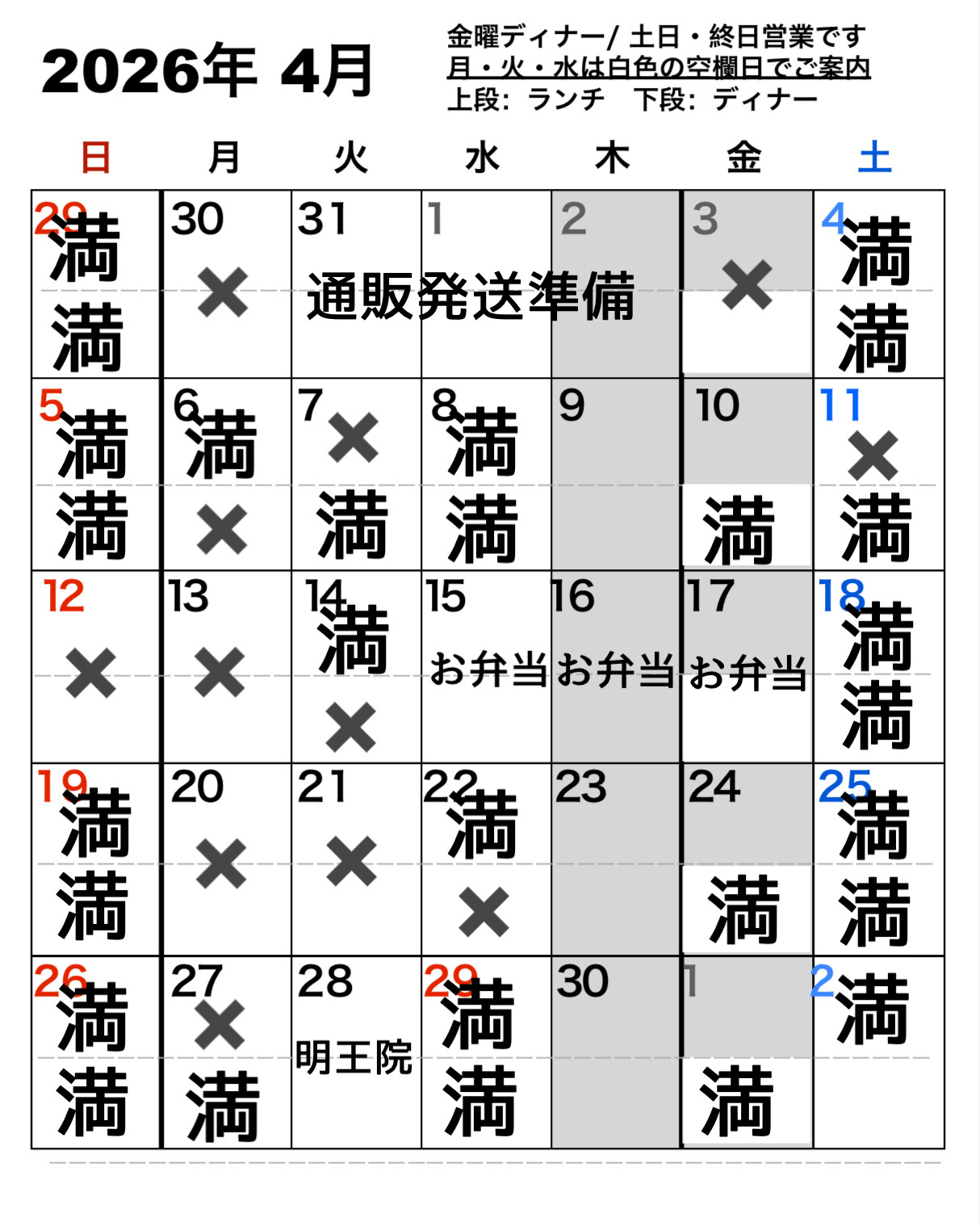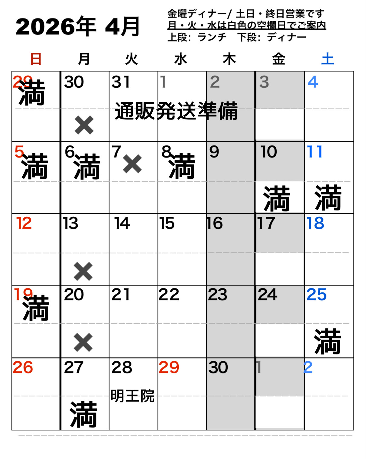 →月・火・水の3日間でカレンダー上の空欄日よりご予約を承ります